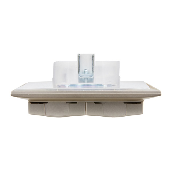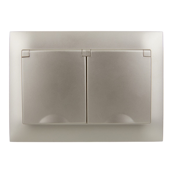 Двухместная электрическая розетка с заземляющими контактами, защитными шторками и крышкой, винтовые зажимы скрытого монтажа цвета шампань SK-R26-16-44-K37-F