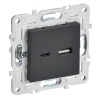Розетка зарядная с двумя USB разъемами тип А, скрытого монтажа серого цвета SK-U21-D31-K03