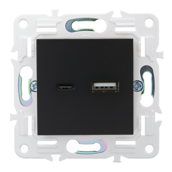 Розетка зарядная быстрая с двумя USB разъемами тип А и С, скрытого монтажа черного цвета SK-U22-018-K02