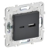 Розетка зарядная быстрая с двумя USB разъемами тип А и С, скрытого монтажа цвет титан SK-U22-018-K48