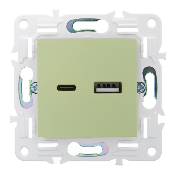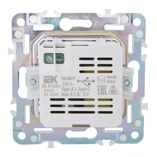 • Розетка для зарядки ИЭК SKANDY SK-R14M USB A+С 3,1А мятный