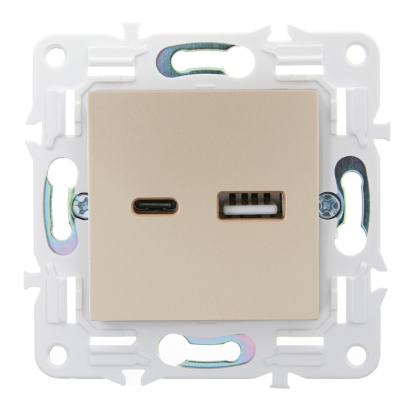 Розетка зарядная с двумя USB разъемами тип А и С, скрытого монтажа песочного цвета SK-U22-D31-K98