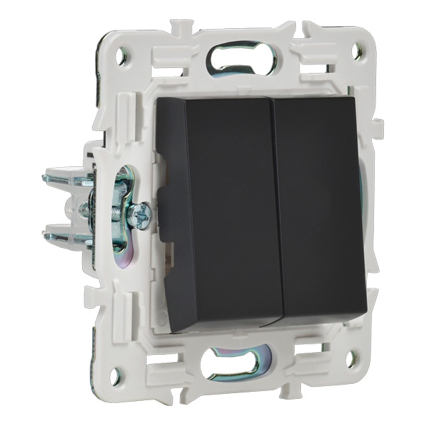 Механизм 2-клавишного выключателя для скрытого монтажа черного цвета. SK-V20-0-10-K02