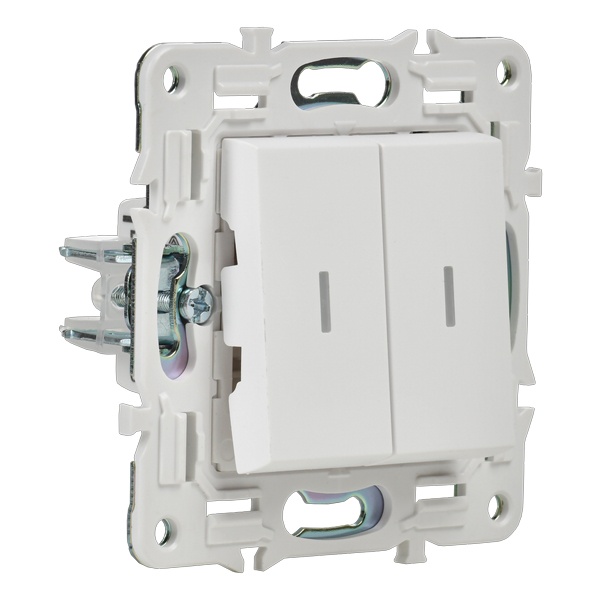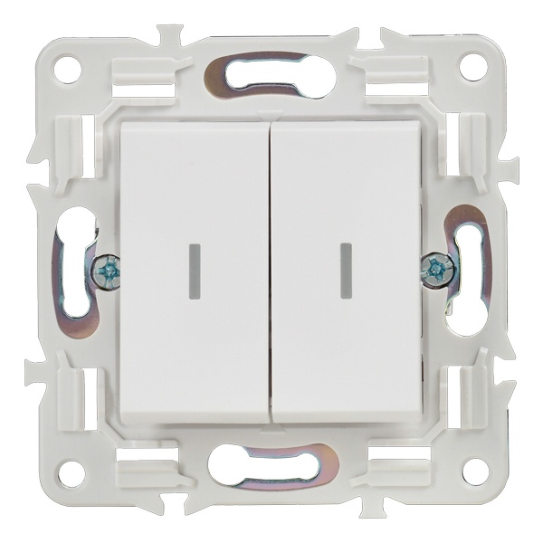 Механизм 2-клавишного выключателя с подсветкой для скрытого монтажа белого цвета. SK-V20-1-10-K01