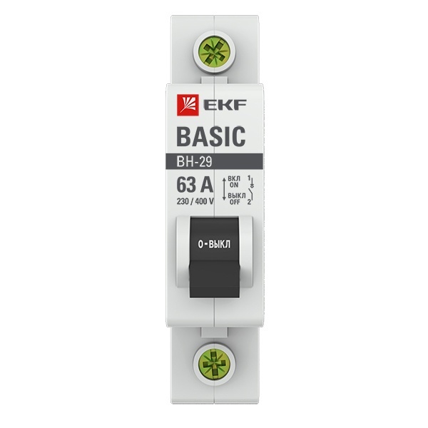 Однополюсный выключатель нагрузки ВН-29 EKF Basic, номинальный ток 63 Ампера SL29-1-63-bas