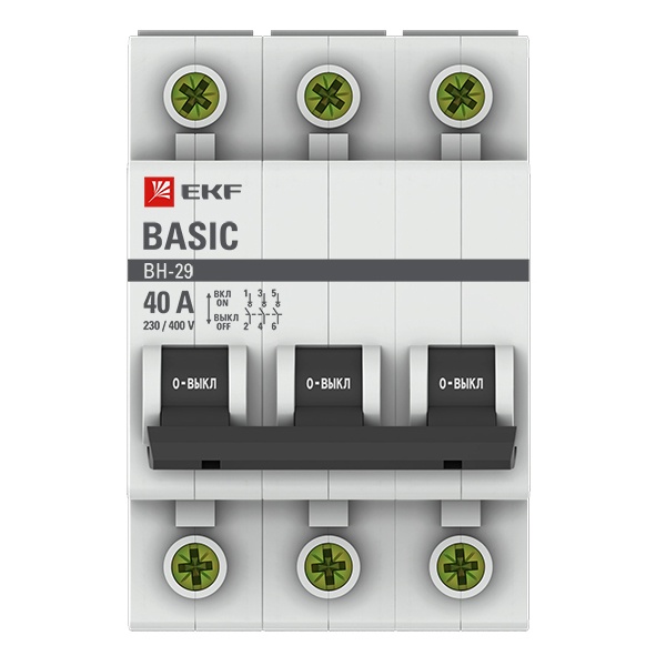 Трехполюсный выключатель нагрузки ВН-29 EKF Basic, номинальный ток 40 Ампер SL29-3-40-bas