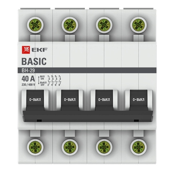 Четырехполюсный выключатель нагрузки ВН-29 EKF Basic, номинальный ток 40 Ампер SL29-4-40-bas