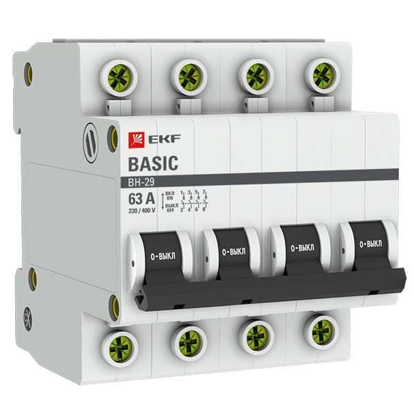 Четырехполюсный выключатель нагрузки ВН-29 EKF Basic, номинальный ток 63 Ампера SL29-4-63-bas