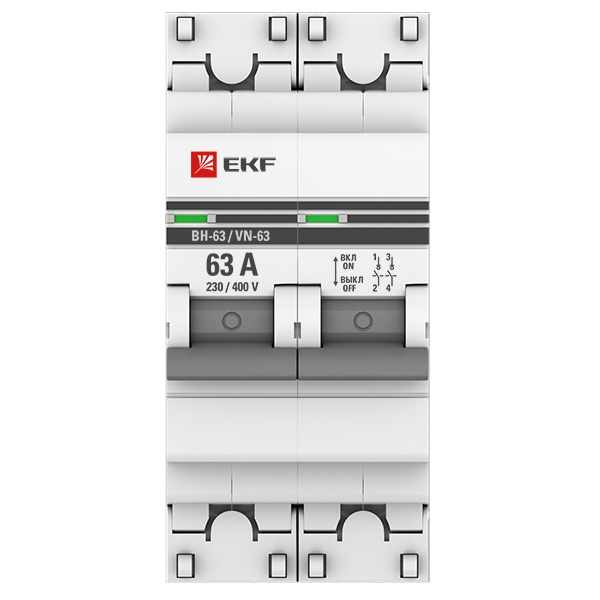 Двухполюсный выключатель нагрузки ВН-63 EKF PROxima, номинальный ток 63 Ампера SL63-2-63-pro
