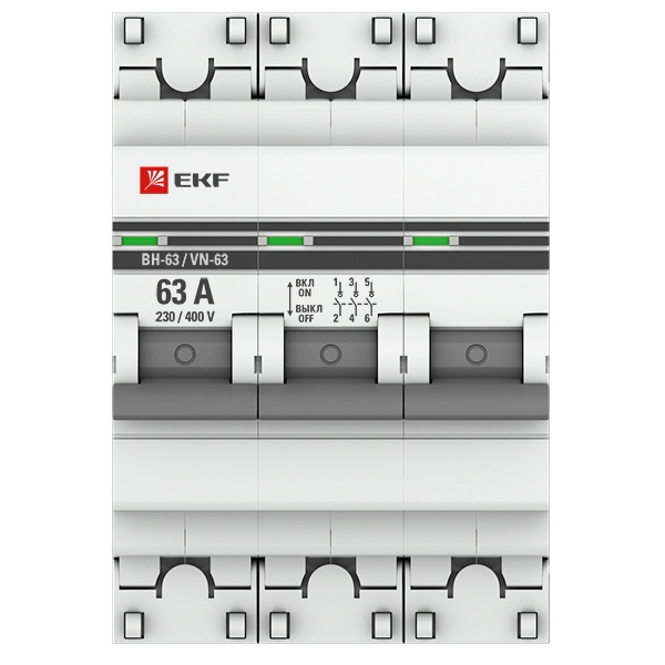 Трехполюсный выключатель нагрузки ВН-63 EKF PROxima, номинальный ток 63 Ампера SL63-3-63-pro