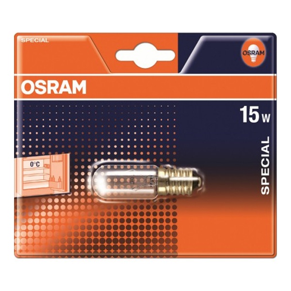 Бытовая галогенная лампа OSRAM SPECIAL T/FRIDGE 15Вт с цоколем Е14. Лицензиатом торговой марки OSRAM в общем освещении является компания LEDVANCE. Используется для холодильников и швейных машин. Лицензиатом торговой марки OSRAM в общем освещении является компания LEDVANCE.