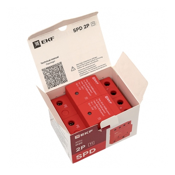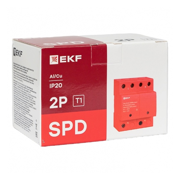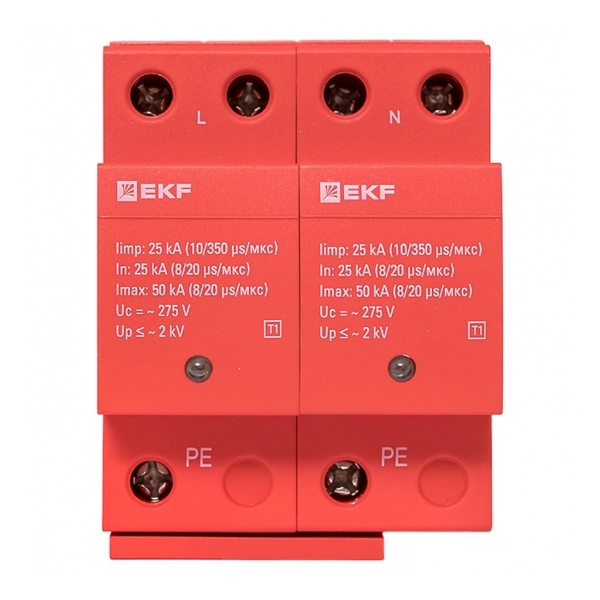 spd-t1-2p Устройство защиты от импульсных перенапряжений EKF Класс 1 Iimp 25kA (10/350?s) 2P 4 модуля