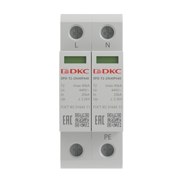 Модульное двухполюсное устройство защиты от импульного напряжения 440 В, 40 кА SPD-T2-2N40P440
