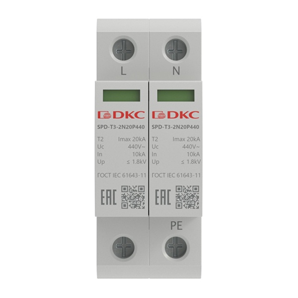 Модульное двухполюсное устройство защиты от импульного напряжения 440 В, 20 кА SPD-T3-2N20P440