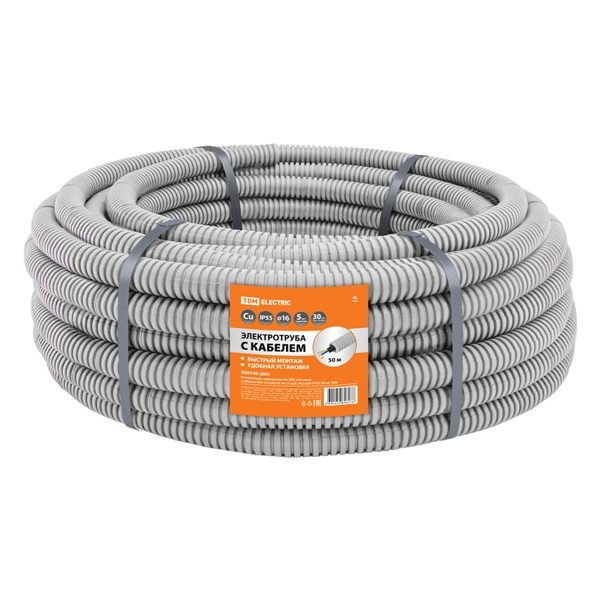 Гибкая пластиковая ПВХ гофра труба 16 мм с электрическим кабелем ВВГ П нг А LS с 3-мя медными жилами 1,5 мм2 ож ТДМ SQ0140-2001