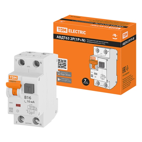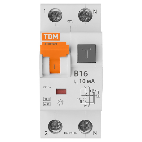 • Дифференциальный автомат TDM 1П+Н В16А 10мА тип А однофазный электронный 6кА АВДТ63 (дифавтомат, АВДТ)