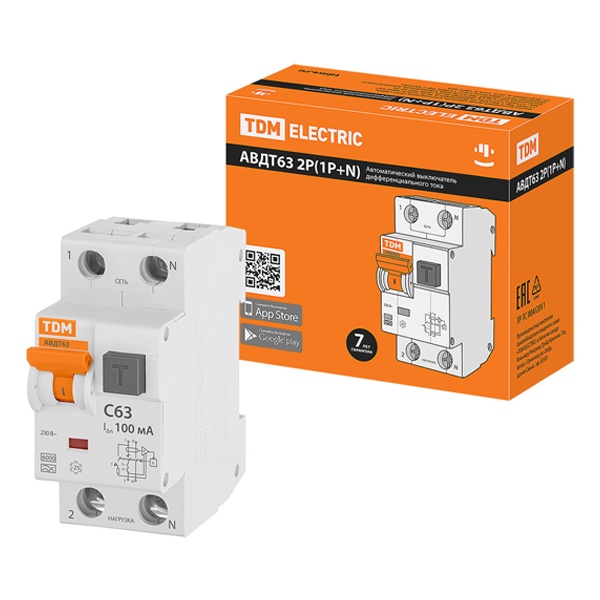 • Дифференциальный автомат TDM 1П+Н C63А 100мА тип А однофазный электронный 6кА АВДТ63 (дифавтомат, АВДТ)