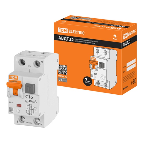 • Дифференциальный автомат TDM 1П+Н C16А 30мА тип А однофазный электронный 6кА АВДТ32 (дифавтомат, АВДТ)