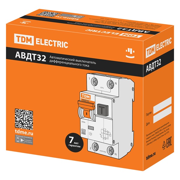 • Дифференциальный автомат TDM 1П+Н C32А 30мА тип А однофазный электронный 6кА АВДТ32 (дифавтомат, АВДТ)