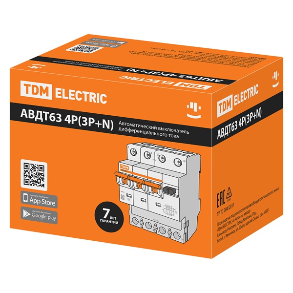 • Дифференциальный автомат TDM 4П(3П+Н) C63А 300мА тип А трехфазный электронный 6кА АВДТ63 (дифавтомат, АВДТ)