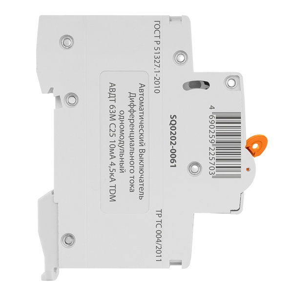 Назначение:Проведение тока в нормальном режиме. Отключение тока при коротких замыканиях или перегрузке. Отключение тока при прикосновении человека к токоведущим частям электроустановок или протекании дифференциального (утечки) тока на землю. Применение:Групповые линии, питающие розетки наружной установки. Преимущества:Компактная ширина модуля (18 мм) позволяет экономить место в элеткрощитах по сравнению со стандартной шириной АВДТ63 (36 мм). Сочетает в себе функции автоматического выключателя и выключателя дифференциального тока. Наличие индикации срабатывания от дифференциального тока утечки. Наличие шести заклепок позволяет усилить конструкцию аппарата и предотвратить деформацию корпуса при затягивании клеммных винтов. Материалы:Корпус и детали выполнены из пластика, не поддерживающего горение. Упаковка:АВДТ63М - 1 шт; Индивидуальная упаковка - 1 шт; Руководство по эксплуатации - 1 шт; Паспорт - 1 шт.