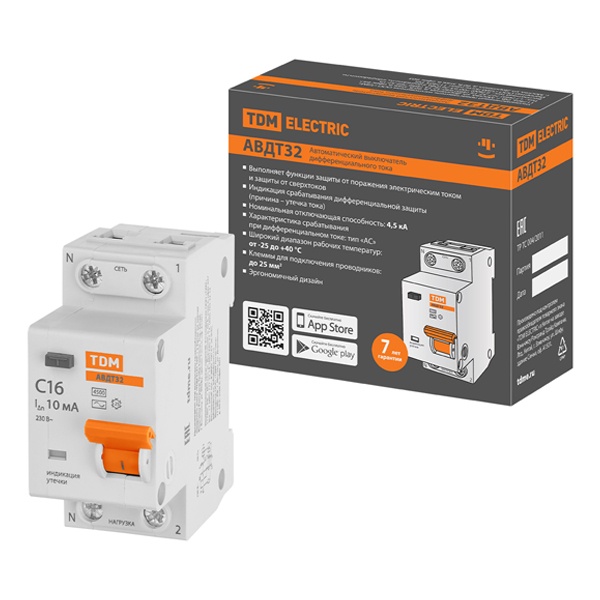Назначение:Проведение тока в нормальном режиме. Защита от токов перегрузки и короткого замыкания. Защита от токов утечки. Отключение тока при прикосновении человека к токоведущим частям электроустановок или протекании дифференциального (утечки) тока на землю. Защита от пожара. Применение:Розеточные группы ванных и душевых помещений. Групповые линии, питающие розетки наружной установки. Инфраструктурные объекты. Жилые дома. Цепи освещения подвалов и гаражей. Преимущества:Насечки на контактных зажимах предотвращают перегрев и оплавление проводов за счет более плотного и большего по площади контакта. Экономичное решения для вашего дома. Конструкция:Аппарат АВДТ 32 4,5 кА представляет собой компактный дифференциальный автомат и сочетает в себе функции авт вык-ля и вык-ля дифф тока. Аппарат занимает два стандартных модуля в щитке (36мм). На лицевой панели реализовано окошко отображающее срабатывание АВДТ – индикации утечки. Материалы:Контактные группы снабжены серебряными наплавками для увеличения срока службы контактов. Маркировка выполнена в соответствии с требованиями ГОСТ и не подвержена стиранию в пределах срока эксплуатации. Корпус и детали выполнены из пластика, не поддерживающего горение.