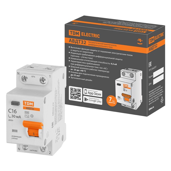 Назначение:Отключение тока при прикосновении человека к токоведущим частям электроустановок или протекании дифференциального (утечки) тока на землю. Защита от токов утечки. Проведение тока в нормальном режиме. Защита от пожара. Защита от токов перегрузки и короткого замыкания. Применение:Жилые дома. Инфраструктурные объекты. Цепи освещения подвалов и гаражей. Групповые линии, питающие розетки наружной установки. Розеточные группы ванных и душевых помещений. Преимущества:Экономичное решения для вашего дома. Насечки на контактных зажимах предотвращают перегрев и оплавление проводов за счет более плотного и большего по площади контакта. Конструкция:Аппарат АВДТ 32 4,5 кА представляет собой компактный дифференциальный автомат и сочетает в себе функции авт вык-ля и вык-ля дифф тока. На лицевой панели реализовано окошко отображающее срабатывание АВДТ – индикации утечки. Аппарат занимает два стандартных модуля в щитке (36мм). Материалы:Контактные группы снабжены серебряными наплавками для увеличения срока службы контактов. Корпус и детали выполнены из пластика, не поддерживающего горение. Маркировка выполнена в соответствии с требованиями ГОСТ и не подвержена стиранию в пределах срока эксплуатации.