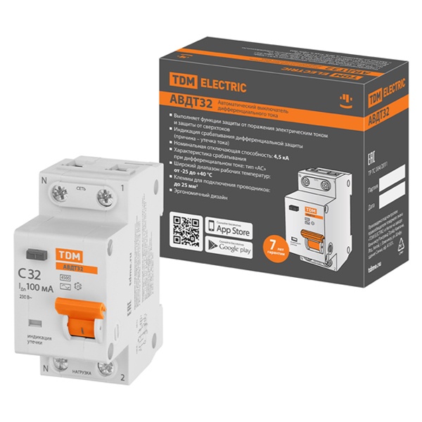 Назначение:Защита от токов утечки. Проведение тока в нормальном режиме. Отключение тока при прикосновении человека к токоведущим частям электроустановок или протекании дифференциального (утечки) тока на землю. Защита от пожара. Защита от токов перегрузки и короткого замыкания. Применение:Цепи освещения подвалов и гаражей. Жилые дома. Розеточные группы ванных и душевых помещений. Инфраструктурные объекты. Групповые линии, питающие розетки наружной установки. Преимущества:Экономичное решения для вашего дома. Насечки на контактных зажимах предотвращают перегрев и оплавление проводов за счет более плотного и большего по площади контакта. Конструкция:На лицевой панели реализовано окошко отображающее срабатывание АВДТ – индикации утечки. Аппарат АВДТ 32 4,5 кА представляет собой компактный дифференциальный автомат и сочетает в себе функции авт вык-ля и вык-ля дифф тока. Аппарат занимает два стандартных модуля в щитке (36мм). Материалы:Маркировка выполнена в соответствии с требованиями ГОСТ и не подвержена стиранию в пределах срока эксплуатации. Контактные группы снабжены серебряными наплавками для увеличения срока службы контактов. Корпус и детали выполнены из пластика, не поддерживающего горение.