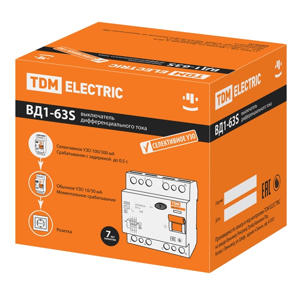 Назначение:Проведение тока в нормальном режиме. Отключение тока при протекании токов утечки на землю. Применение:Жилищно-коммунальное хозяйство. Электрифицированные рекламные конструкции. Промышленные здания. Строительные объекты. Преимущества:На лицевой панели реализован механический индикатор положения контактов (включено/отключено), Наличие двойного одновременного подключения. Шина и проводник значительно расширяет диапазон возможных схемных решений. Защелка на DIN-рейку с фиксацией упрощает монтаж и демонтаж аппарата. ВД1-63 тип S предназначен для обеспечения селективной работы при последовательном включении с устройствами защитного отключения общего применения. что позволяет избежать несанкционированного разбора аппарата. Конструкция:представляют собой полностью электромеханический аппарат – он не имеет собственного потребления электроэнергии, но при этом обладает высоким быстродействием, не более 40 мс. Аппарат сохраняет работоспособность даже при обрыве нулевого проводника. Дугогасительные решетки в каждом полюсе. Материалы:Корпус и детали аппарата выполнены из пластика, не поддерживающего горение. Упаковка:ВД1-63 2Р по 6 шт. ВД1-63 4Р по 3 шт. ВД1-63 тип А 2Р по 6 шт. ВД1-63 тип А 4Р по 3 шт. ВД1-63S 2Р по 6 шт. ВД1-63S 4Р по 3 шт. Руководство по эксплуатации - 1 шт. на групповую упаковку Паспорт - 1 шт. на групповую упаковку