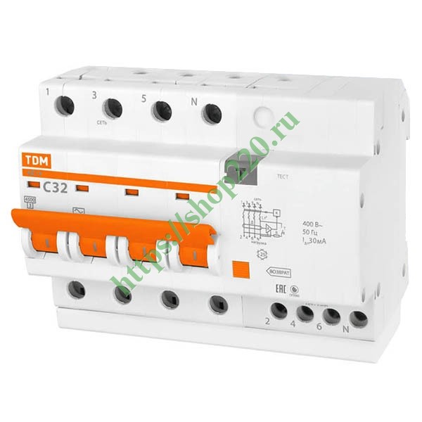 Дифференциальный автомат АД14 4Р С32А 30мА тип АС TDM 6,5 модуля (дифавтомат, АВДТ)