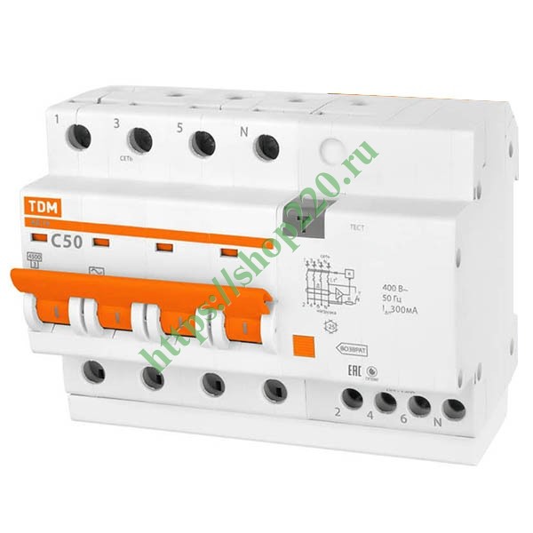 Дифференциальный автомат АД14 4Р 50А 100мА TDM (дифавтомат, АВДТ)