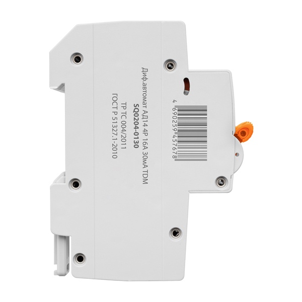 Четырехполюсный дифавтомат АД14 ТДМ, номинальный ток 16 ампер, дифференциальный ток 30 мА, шириной 5 модулей SQ0204-0130