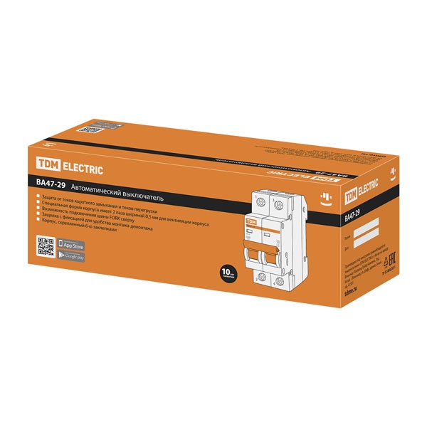 Назначение:Оперативное включение и выключение электрических цепей. Проведение тока в нормальном режиме. Отключение тока при протекании токов утечки на землю. Применение:Вводно-распределительные устройства для жилых и общественных зданий. Преимущества:Ширина модуля 17,5 мм. Возможность пломбирования для защиты от несанкционированного доступа (заглушка поставляется отдельно). Геометрия боковых поверхностей изделия разработана для улучшения теплового режима работы. На лицевой панели реализован механический индикатор положения контактов (включено/отключено), Наличие двойного одновременного подключения. Шина и проводник значительно расширяет диапазон возможных схемных решений. Материалы:Корпус и детали аппарата выполнены из пластика, не поддерживающего горение. Упаковка:Руководство по эксплуатации - 1 шт. на групповую упаковку Паспорт - 1 шт. на групповую упаковку Групповая упаковка ВА47- 29 1Р по 12 шт. ВА47-29 2Р по 6 шт. ВА47-29 3Р по 4 шт. ВА47-29 4Р по 3 шт.