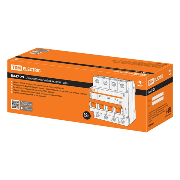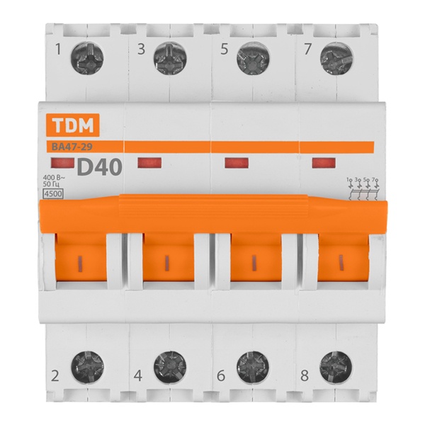 • Автоматический выключатель TDM ВА47-29 4Р 40А 4,5кА характеристика D (автомат электрический)