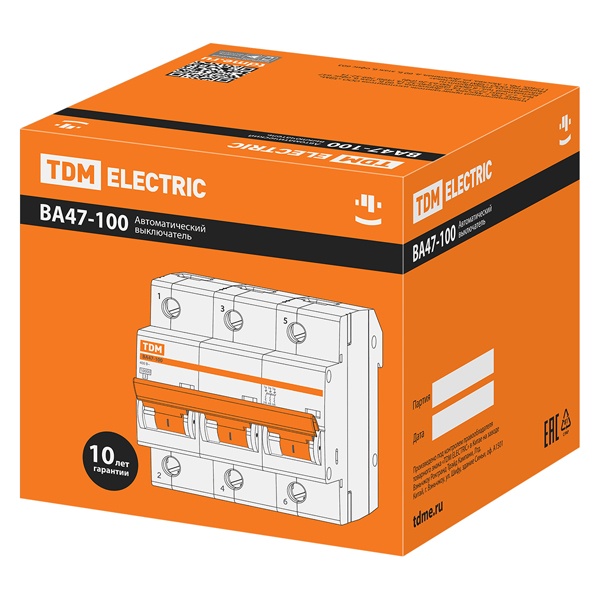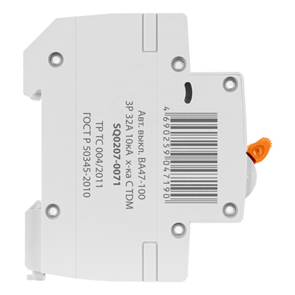 Назначение:Оперативное включение и выключение электрических цепей. Проведение тока в нормальном режиме. Отключение тока при протекании токов утечки на землю. Применение:Вводно-распределительные устройства бытовых и промышленных электроустановок. Преимущества:Клеммные зажимы автомата промаркированы, что позволяет избежать ошибок при монтаже. Высокая отключающая способность – 10 000 А. Защелка на DIN-рейку с фиксацией упрощает монтаж и демонтаж аппарата. Материалы:Корпус и детали аппарата выполнены из пластика, не поддерживающего горение. Упаковка:Руководство по эксплуатации - 1 шт. на групповую упаковку Паспорт - 1 шт. на групповую упаковку Групповая упаковка ВА47-100 1Р по 6 шт. ВА47-100 2Р по 3 шт. ВА47-100 3Р по 2 шт.
