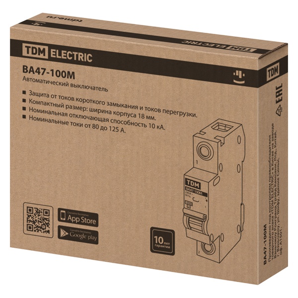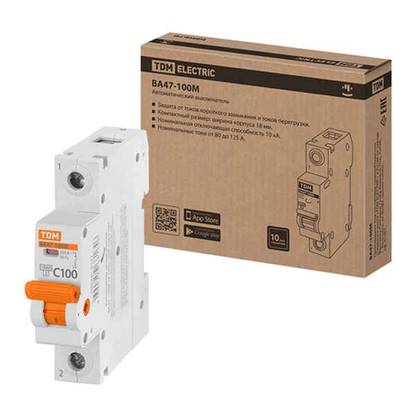 Выключатель автоматический TDM ВА47-100М 1Р С100А 10кА 1 модуль SQ0207-0101