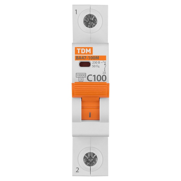 Однополюсный электрический автомат ВА47-100М ТДМ, номинальный ток 100 ампер уставка С SQ0207-0101