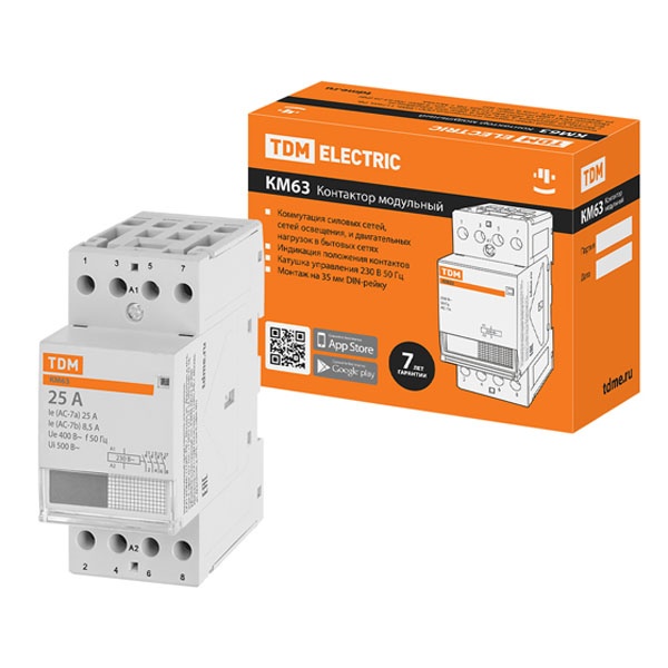 • Контактор модульный TDM КМ63/4-25А 4НО 230В АС 2 модуля