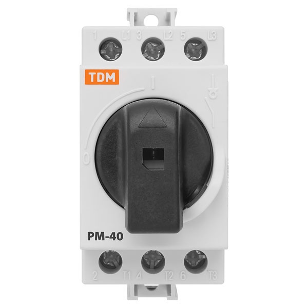 Рубильник модульный TDM РМ-40 3П 40A трехфазный (выключатель нагрузки) — модульный выключатель нагрузки для ручного включения и отключения электрических цепей в трехфазных распределительных щитах. Предназначен для коммутации под нагрузкой и для безопасного разъединения участка сети при обслуживании, диагностике и профилактических работах.