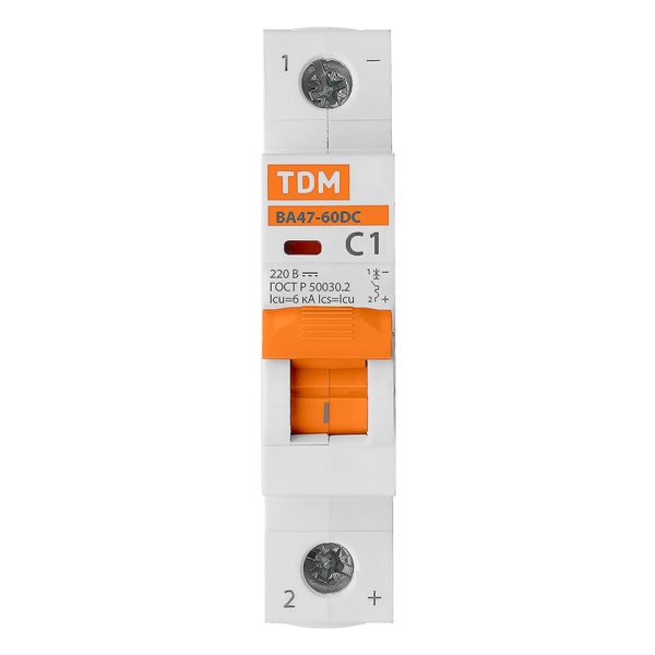 Однополюсный электрический автомат постоянного тока 1А, ПКС 6000А, характеристика расцепителя С, ТДМ ВА47-63 SQ0223-1002