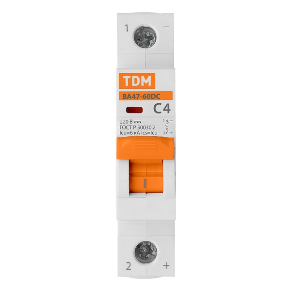 Однополюсный электрический автомат постоянного тока 4А, ПКС 6000А, характеристика расцепителя С, ТДМ ВА47-63 SQ0223-1006