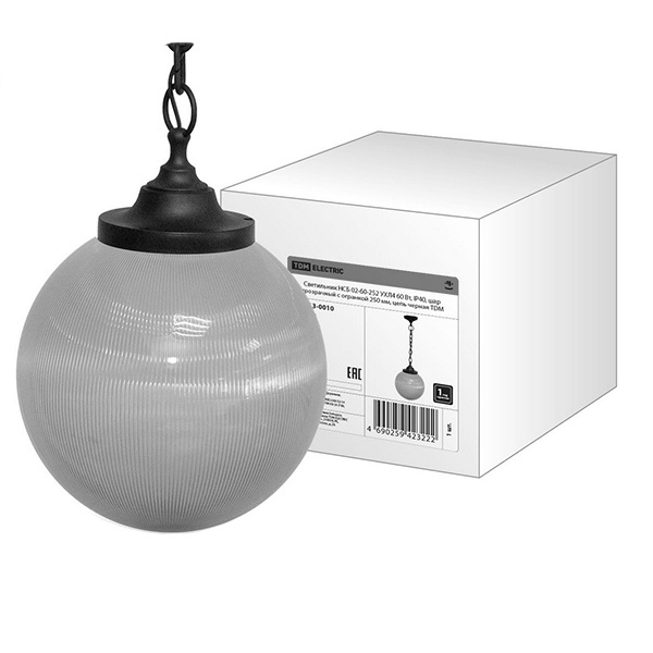 Светильник TDM НСБ 02-60-252 УХЛ4 60 Вт, IP40, шар прозрачный с огранкой 250 мм, цепь черная SQ0313-0010