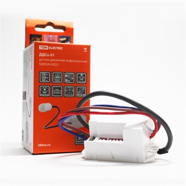 SQ0324-0022 Датчик движения скрытый TDM ДДСк-01 800W 5сек/8мин 6м 10/2000лк, 120(сбоку)+360(сверху)гр IP20/IP44 фото 1