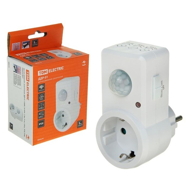Датчик движения розеточный ДДР-01 1200Вт, 10-420с, 2-9м, 3+лк, 120гр, IP20, TDM Electric