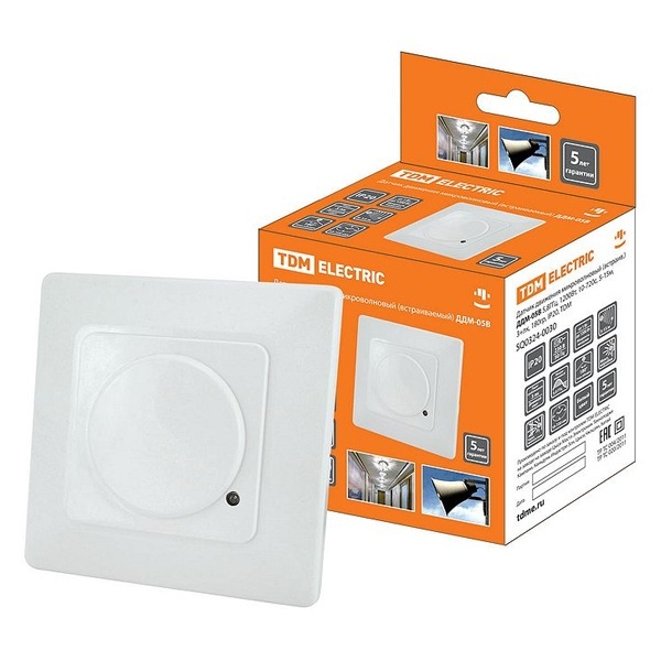 Датчик движения в подрозетник микроволновый TDM ДДМ-05В 5,8ГГц 1200W 10-720с 5-15м 3+лк 180гр IP20 SQ0324-0030