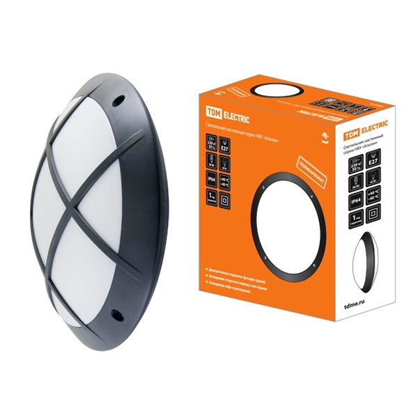 Для декоративного наружного освещения частных жилых домой, террас, в качестве подсветки фасадов зданий, а также для внутреннего освещения используется светильник серии НБУ торговой марки TDM Electric. Он представляет собой модель Альтан 2 в черном цвете и имеет накладной тип установки на поверхность из нормально воспламеняемых материалов. Светильник имеет стильное эффектное оформление и современный дизайн. Конструкция прибора состоит из корпуса и плафона, сделанных из ударопрочного поликарбоната. Матовое покрытие поверхности создает мягкий рассеянный свет. Главным преимуществом светильника является влагозащищенный корпус с надежной степенью защиты IP64. Для герметичного присоединения проводников на вводе имеется сальник. А для дополнительной защиты от механических воздействий на конструкции прибора предусмотрена решетка. В качестве используемых источников света могут выступать обычные лампы накаливания мощностью 60 Ватт, компактные люминесцентные до 30 Ватт и светодиодные на 12 Ватт. Изделие имеет 1 керамический патрон с цоколем Е27. Компактный светильник рассчитан на напряжение питающей сети 230 Вольт частотой 50 Герц. Рабочий диапазон температур составляет от -45 до +50 градусов.