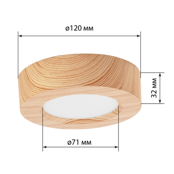 Светильник светодиодный TDM накладной круг Даунлайт СПО 6 Вт 3000K (сосна) 120х32мм SQ0329-0411