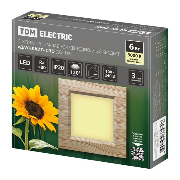 SQ0329-0418 Светильник светодиодный TDM накладной квадрат Даунлайт СПО 6 Вт 3000K (сосна) 120х120х32мм фото 6