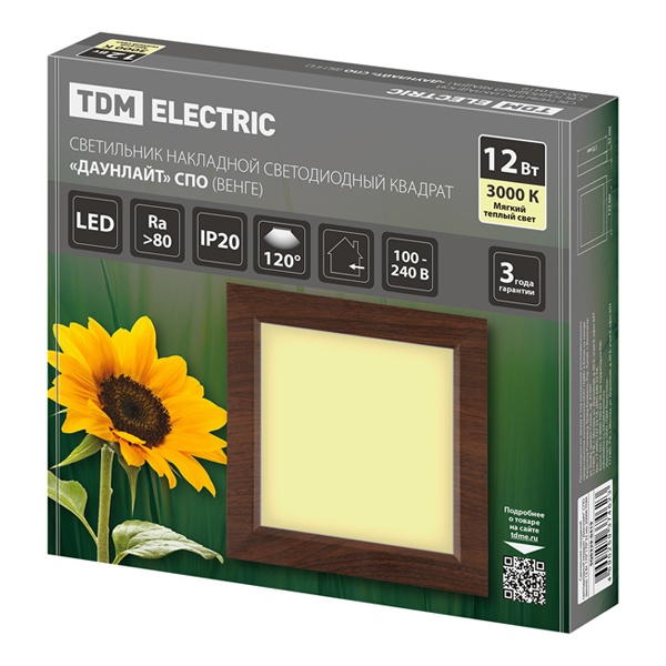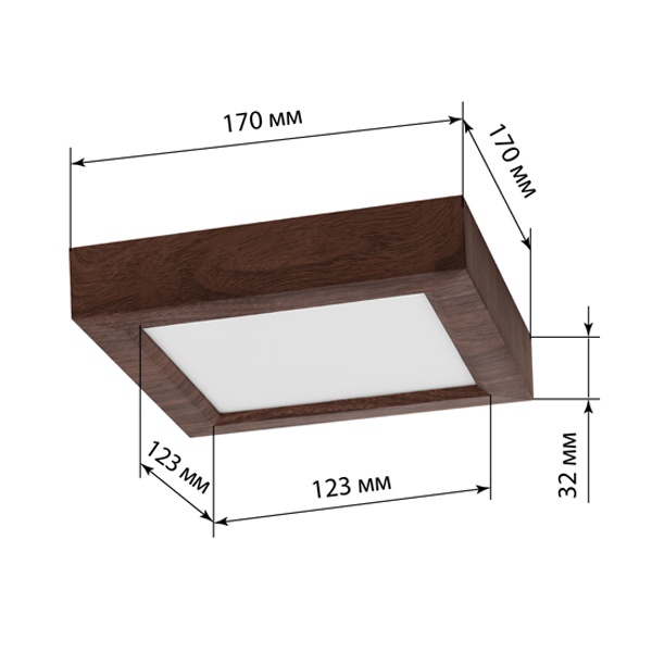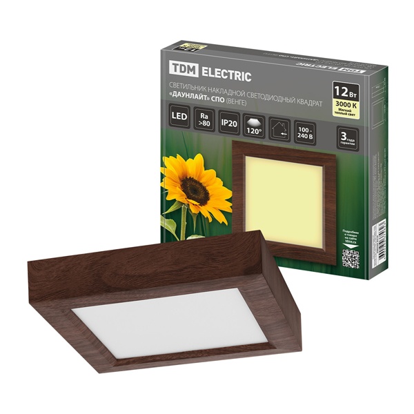 Светильник накладной светодиодный квадрат "Даунлайт" СПО (венге) 12 Вт 170*170*32 мм 3000К TDM Electric