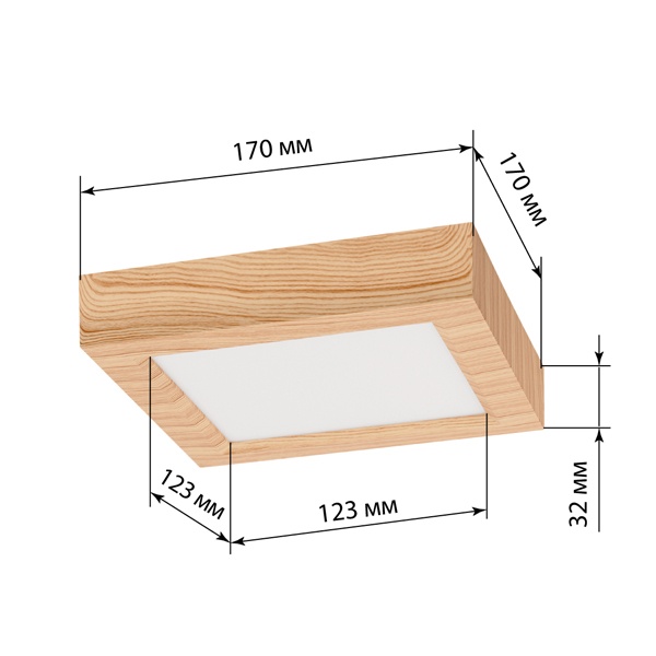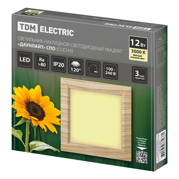 • Светильник светодиодный TDM накладной квадрат Даунлайт СПО 12 Вт 3000K (сосна) 170х170х32мм